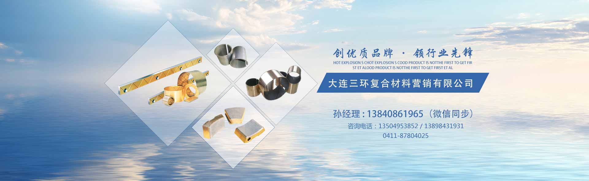 大連三環(huán)復(fù)合材料營銷有限公司成立于1991年,是一家研發(fā)、制造、銷售固體潤滑軸承及塑料—金屬復(fù)合材料滑動軸承的公司。 公司坐落在美麗的濱城大連,擁有鋼背復(fù)合材料軸承、自潤滑關(guān)節(jié)軸承、氟塑瓦(彈性金屬塑料瓦)等產(chǎn)品的生產(chǎn)廠,自有檢驗試驗和生產(chǎn)制造設(shè)